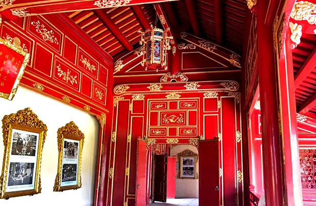 儀式などが行われた太和殿、グエン王朝歴代の皇帝を祀る顕臨閣、初代皇帝のザーロン帝が母親へ贈った延寿宮、当時の宮廷舞踊の劇場を復元した閲是堂、官僚の詰め所だった右廡と左廡、かつてグエン王朝の旗がなびいていたフラッグタワー、王宮を守るために供えられた大砲などがあり見所が多すぎるので、ガイド付きでのご案内が必須の場所になります。