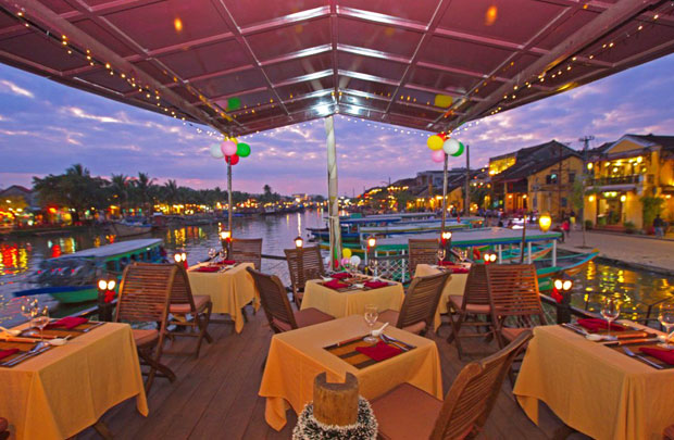 川から幻想的なホイアンの旧市街を眺めながらの食事