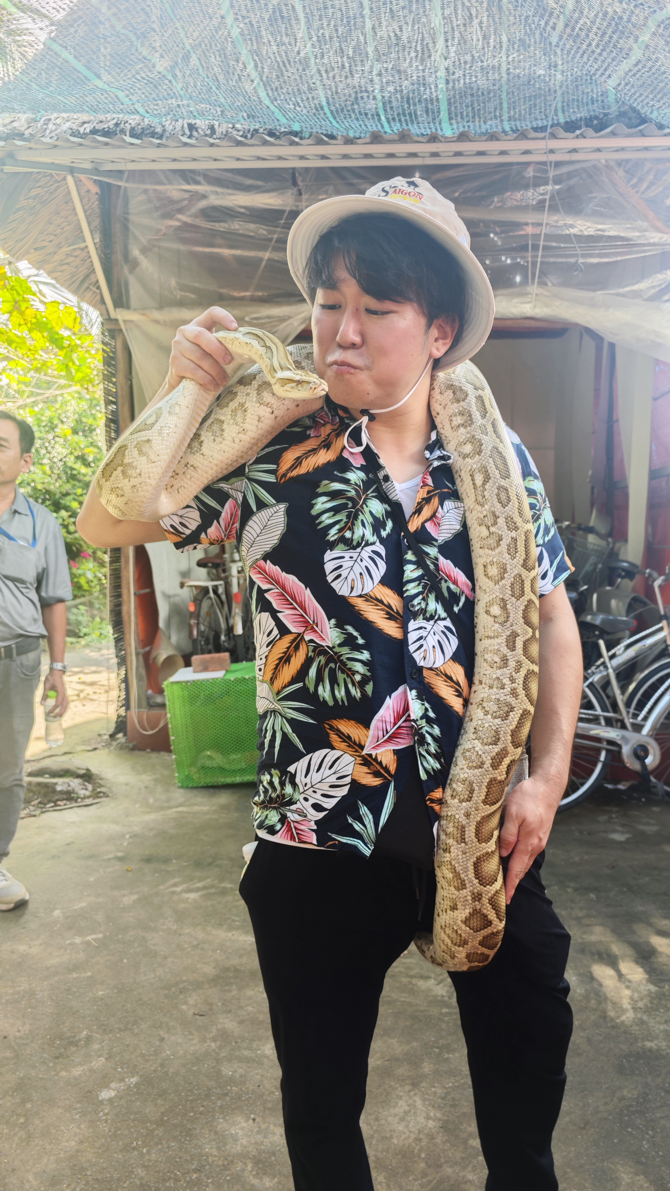 クチトンネルやメコン川だけでなく、工芸品や竹繊維の上質な服やタオルのお店にも立ち寄れました。ハチミツ工場では養蜂中のハチの巣を持たせてもらったり、15キロほどある大蛇を首に巻かせてもらったりと貴重な体験も。さらに馬車に乗ったり、生演奏と生歌を聴きながらフルーツを味わったりと盛りだくさん!(すべてツアー料金に含まれていました。お土産は勧められましたが、断っても全く問題なし)