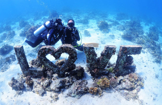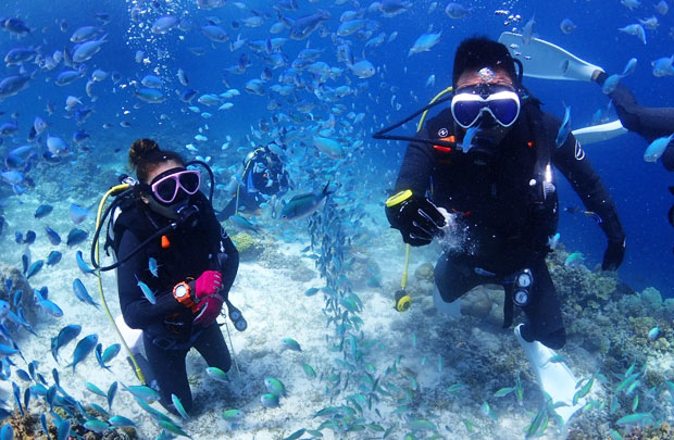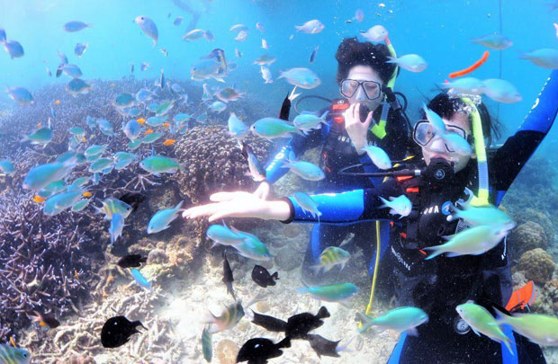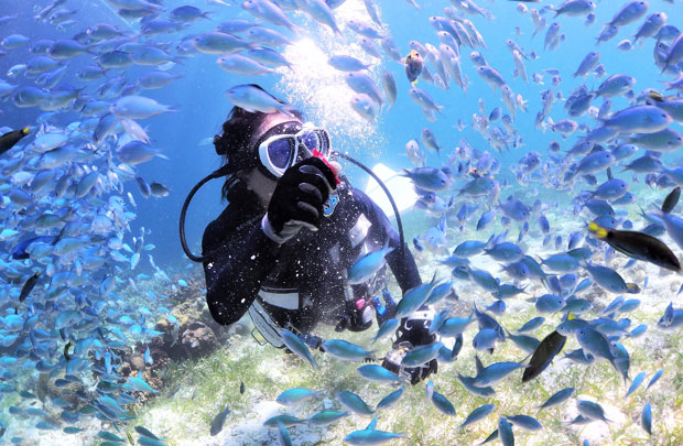 美しいサンゴ礁とお魚たちに囲まれた写真は一生の思い出になること間違いなしです。