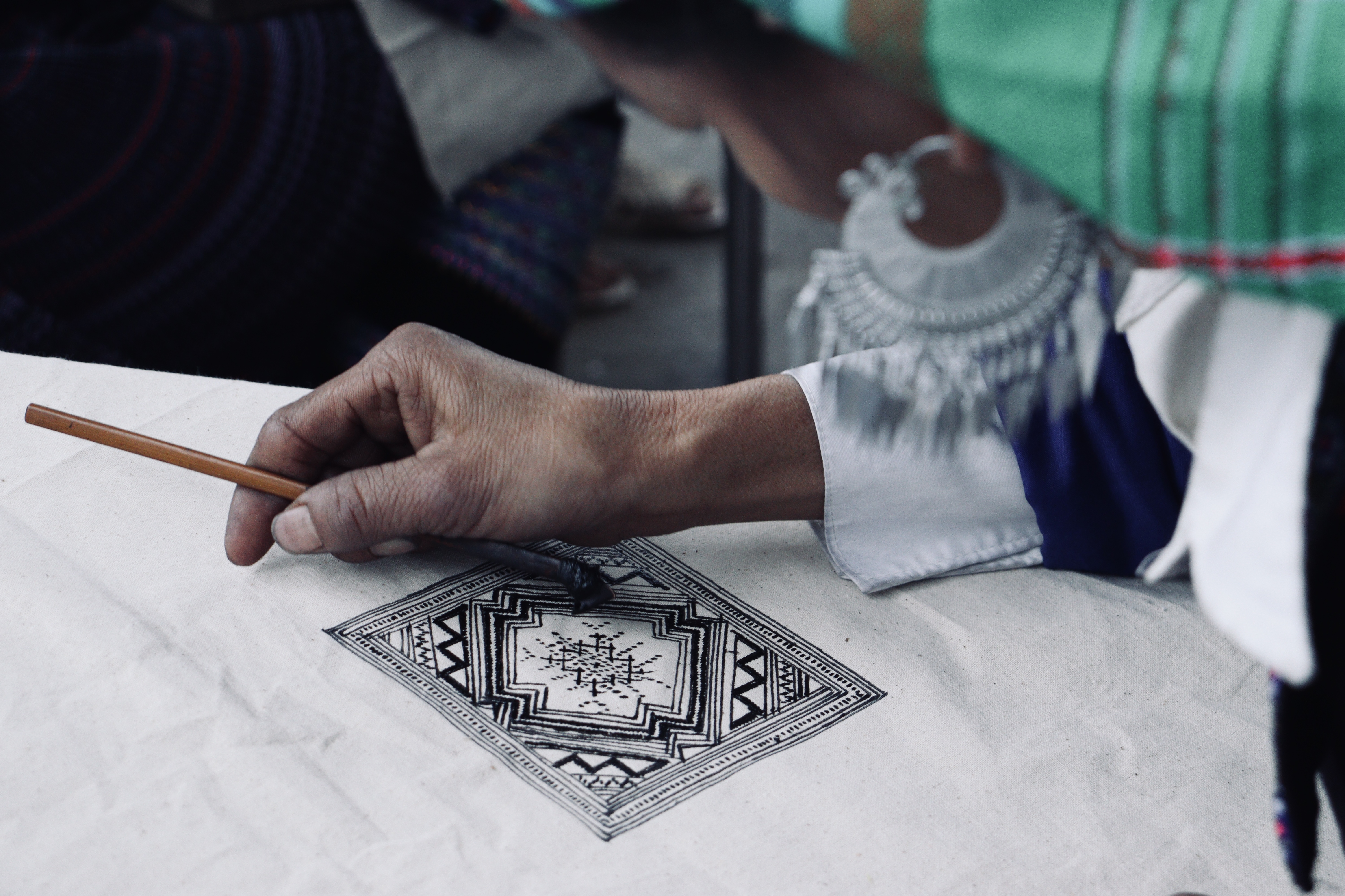 モン族は文字を持たない民族で、ろうけつ染めの模様には、彼らの価値観や大切にしてきた想いが込められ、世代を超えて受け継がれてきました。