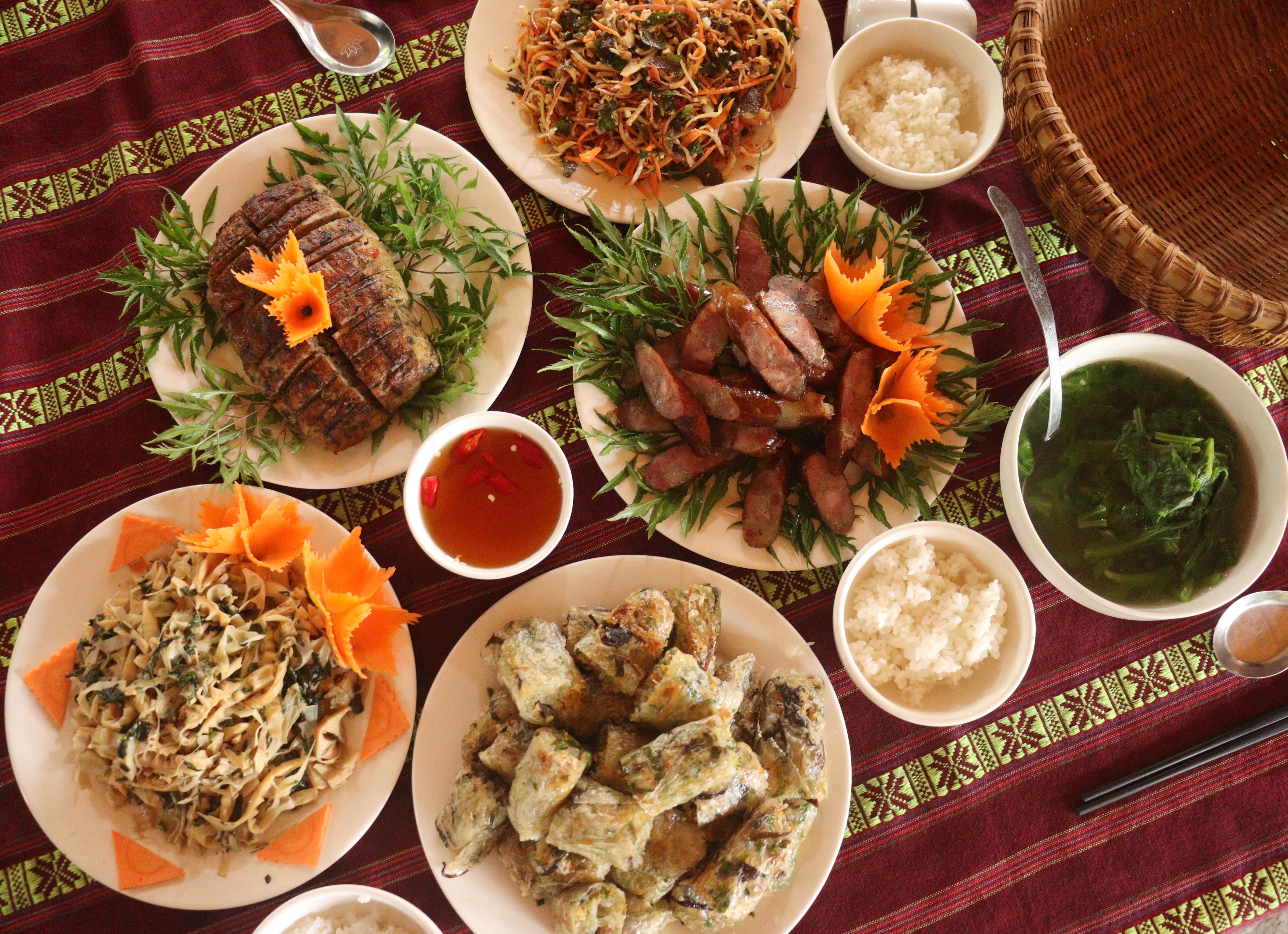 ホームステイで夕食をとります。 旬の食材を使ったタイ族の伝統料理をお楽しみいただけます。 食後は自由時間です。 |
