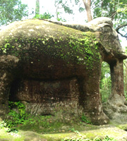 プリア・アン・トンのさらに奥、深い山の中には埋もれた寺院や彫像、奇石などが50か所以上もあるクメール山上遺跡群があり、中でも人気があるのは等身大の巨大な象の彫像、スラードムライです。