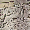 後に起きた宗教戦争により剥ぎとられてしまったレリーフや彫像もありますが、それにも増す美しい彫刻の数々が彩る周壁、中庭の僧房や小堂の壁にもラーマーヤナ(古代インドの叙事詩)の物語が描かれ、当時の碑文も残ります。