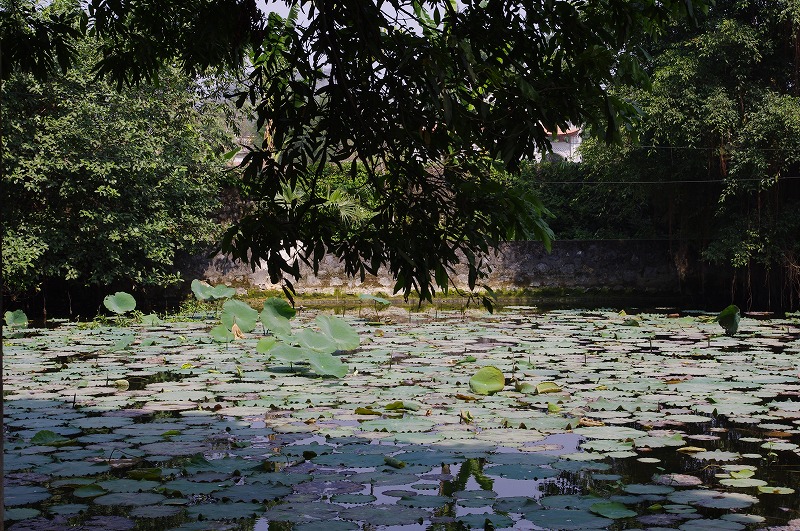 蓮の葉が水面に浮き出てのどかな風景
