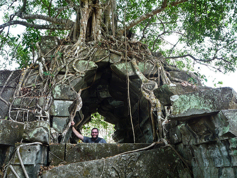 ベンメリア遺跡の中に入るとすぐに遺跡が崩壊していることが分かります。崩壊は主に内戦、大木による浸食、アリが地下に大きな空洞を作ったことにより自重で崩壊したと考えられています。遺跡はジャングルの中に手つかずのまま放置されていて、崩壊した壁が道を塞いでいたり木が遺跡に倒れかかっていたりするので、まるで数百年前から時が止まっているかのような感覚を味わえます。