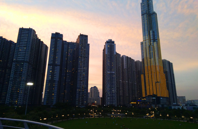個人的に気に入っている夜景鑑賞スポットです。超高層ビル郡「ランドマーク81」に隣接する公園です。日本では見ることができない高層ビル群に圧倒されます。