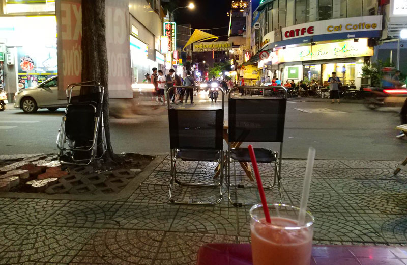 ホーチミンの熱気を感じるならブイビエン通りがおすすめです。夜になると現れる椅子に座ってビールを楽しみましょう。特に100〜120番台の住所のお店がおすすめです。(ベトナムでは看板に住所の番号が書かれています)