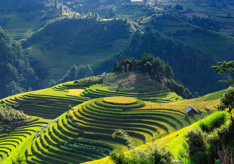 棚田で働く人々ものどかで、彼らの暮らしぶりを眺めていると時間の流れを忘れられます。どこか懐かしささえ感じるサパの棚田は5、6月ごろが見頃です。また、新緑の棚田も美しいですが、黄金色の棚田を見るなら9、10月がベストシーズンです。