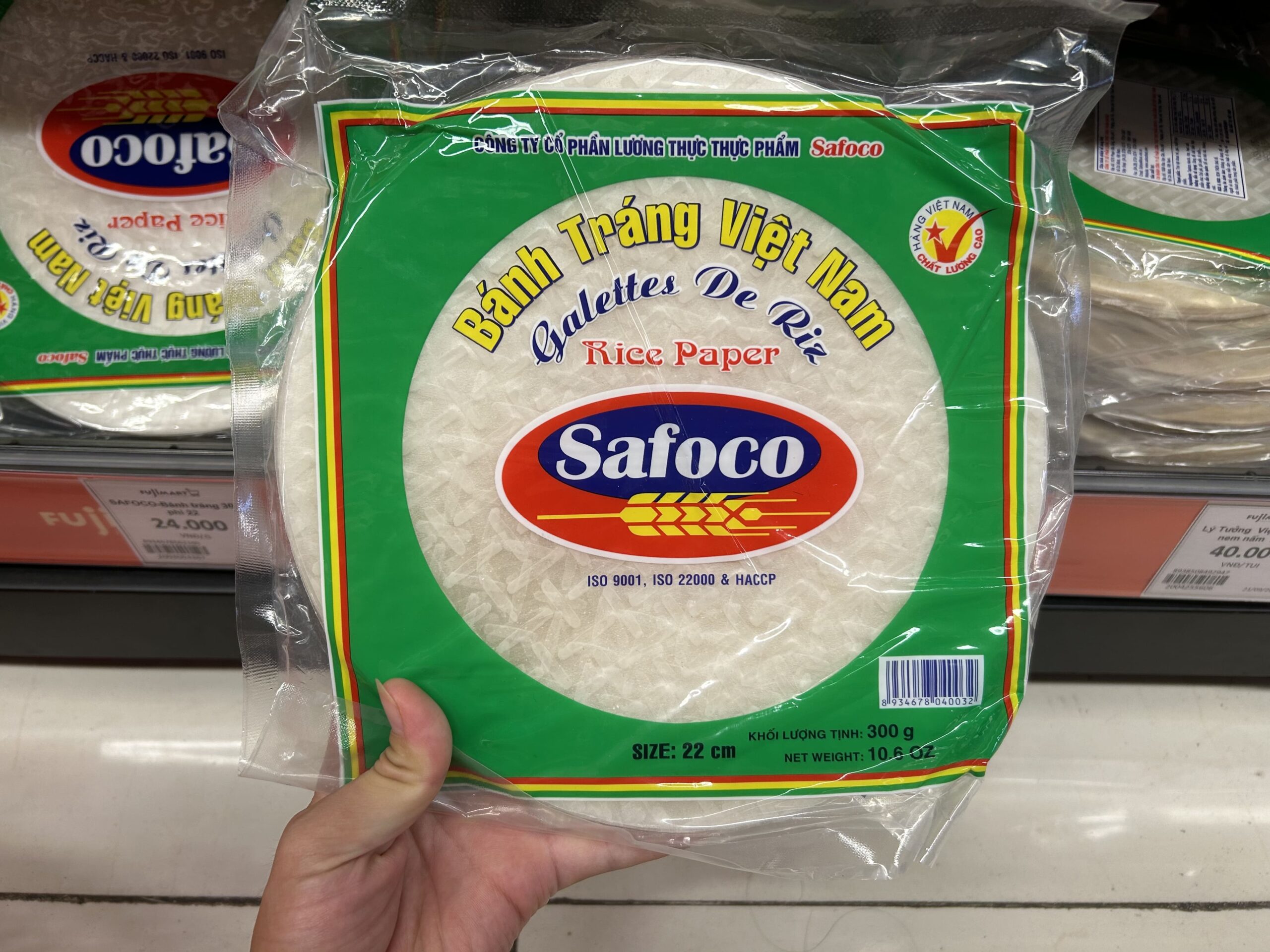 スーパーではサイズや厚み、原材料の違うライスペーパーが数多く並び、料理好きな人へのお土産としてもおすすめ。