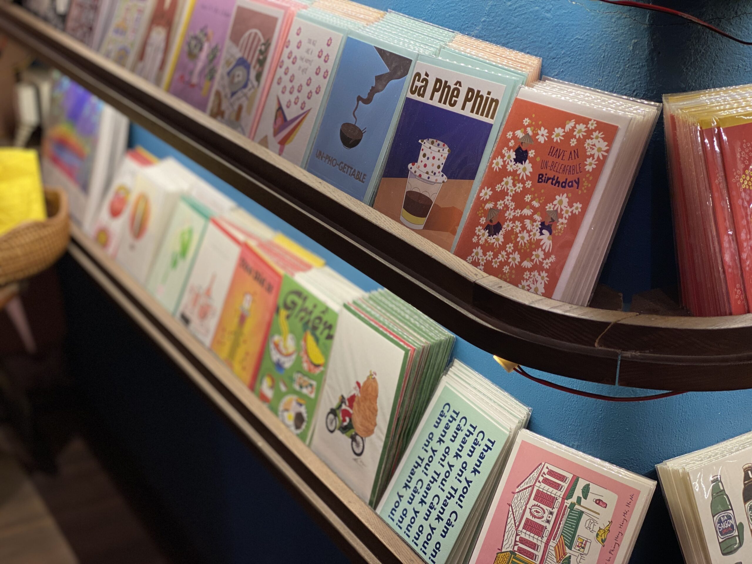 旧市街の街並みやハノイ大教会、ローカルな風景を切り取ったポストカードは、気軽に買える定番雑貨。