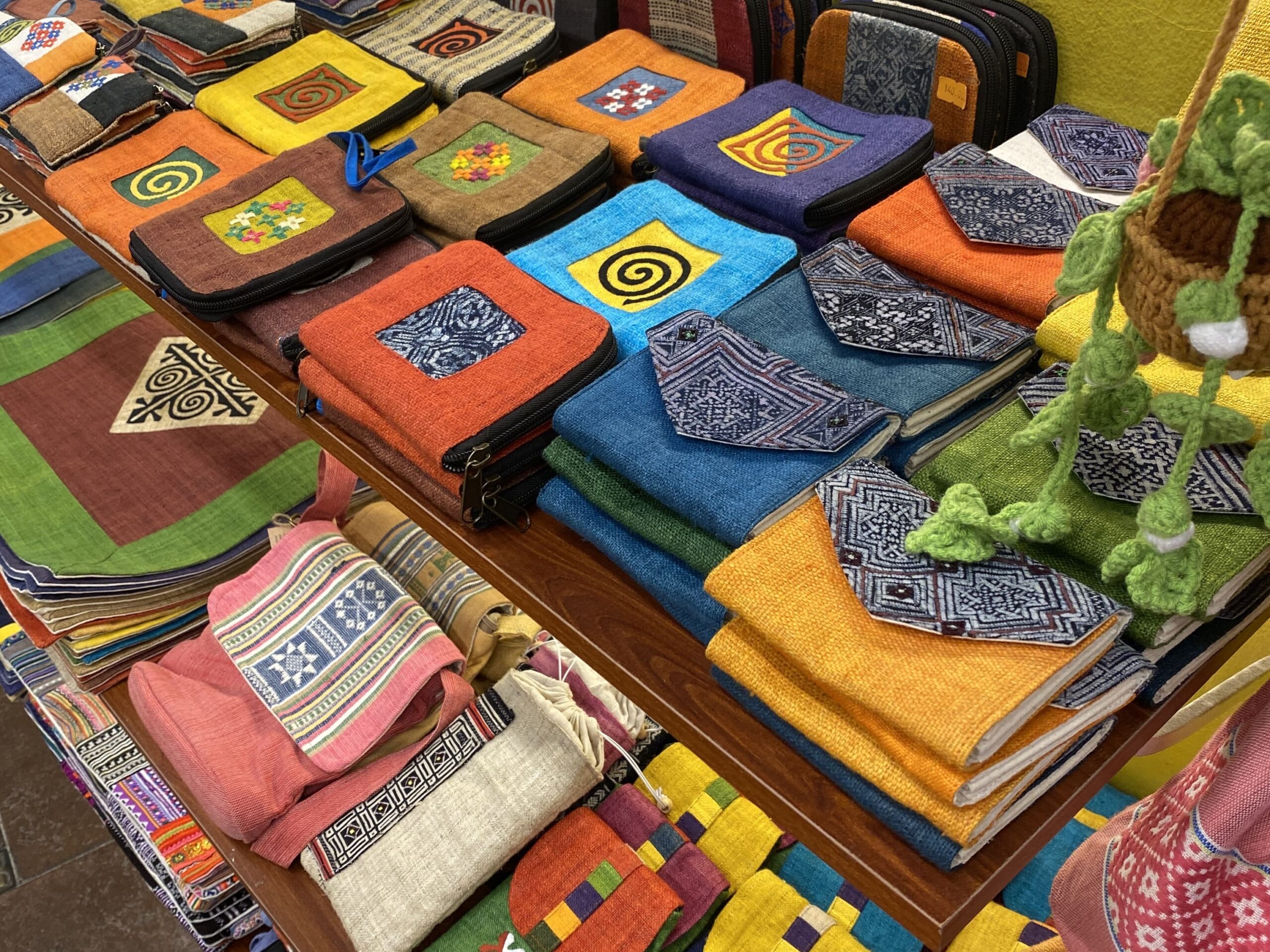 ベトナムの少数民族の織物や、手刺繍が施されたポーチや巾着などは、ハノイらしい温かみを感じられる雑貨。