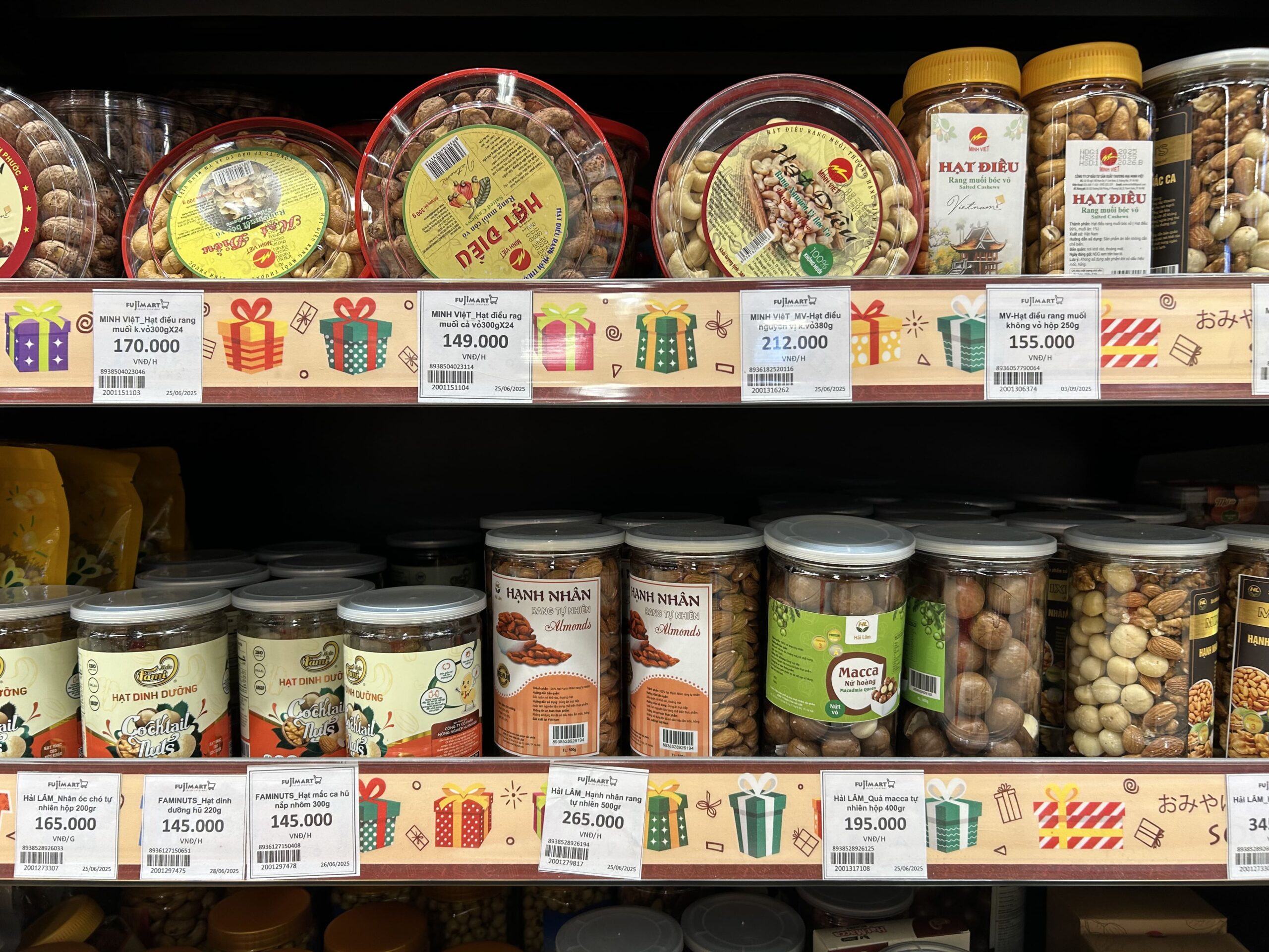 また、チリ味やガーリック風味、ココナッツ風味など、ベトナムらしいフレーバーのナッツも豊富。