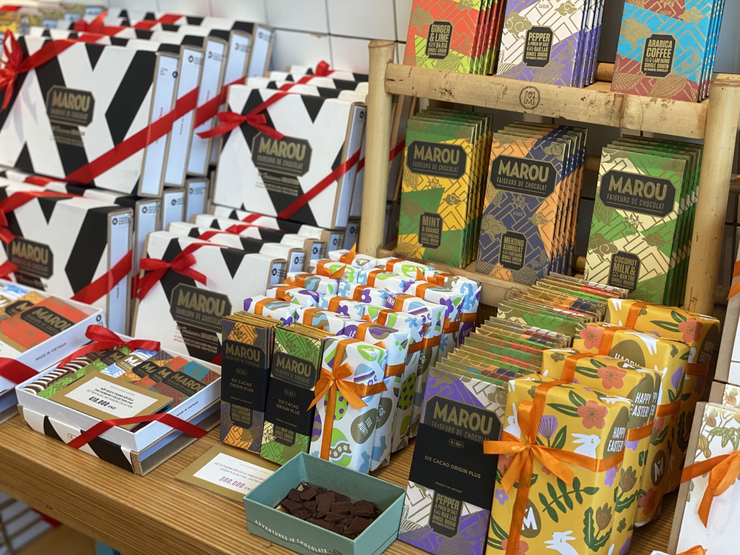 中でも有名なのが、ベトナム産カカオにこだわった「Marou(マルゥ)」。おしゃれなパッケージと本格的な味わいで、観光客にも在住者にも人気のブランドです。