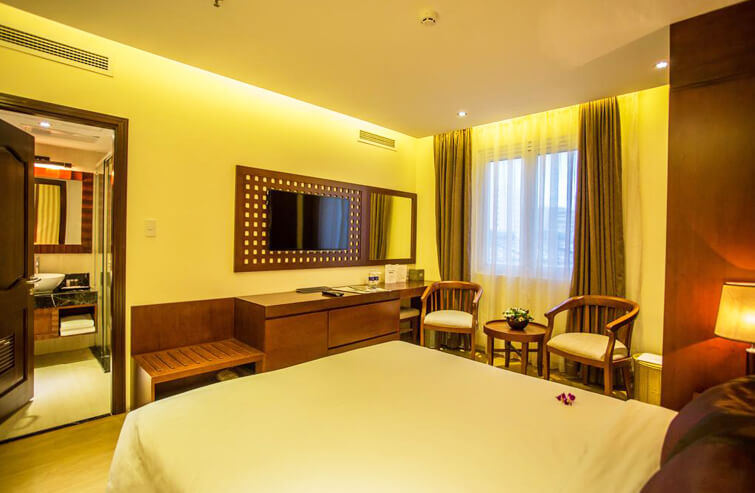 パラゴンサイゴンホテルはホーチミン市内中心部に位置するホテルで、クラシックウイングとニューウイングとの2つのフロアから構成される機能的な造りとなっています。客室はあたたかみのある木製家具と伝統的なデザインを取り入れ落ち着いた雰囲気を演出しています。全室ウッドフロアで、エアコン、薄型テレビ、ミニバーが備わります。スイートには独立したリビングルームがあり、専用バスルームにはシャワーまたはバスタブが付いています。 また部屋の窓からは、オペラハウスなどサイゴンの中心部のパノラマを眺められます。こちらのホテルは日本人の観光客が多いので日本人のスタッフもいるので、言葉が心配というお客様も安心して滞在が楽しめます。ホームページも日本語表記があるのでご予約も安心して出来ます。