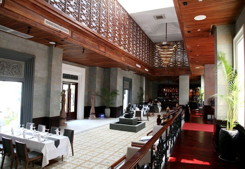 マリス・レストランの豪華な建物の中へ入ると、高い天井にグレーの石、広い空間など、美しいインテリアに目を奪われます。これらは、アンコール・ワット遺跡から影響を受けてデザインされています。