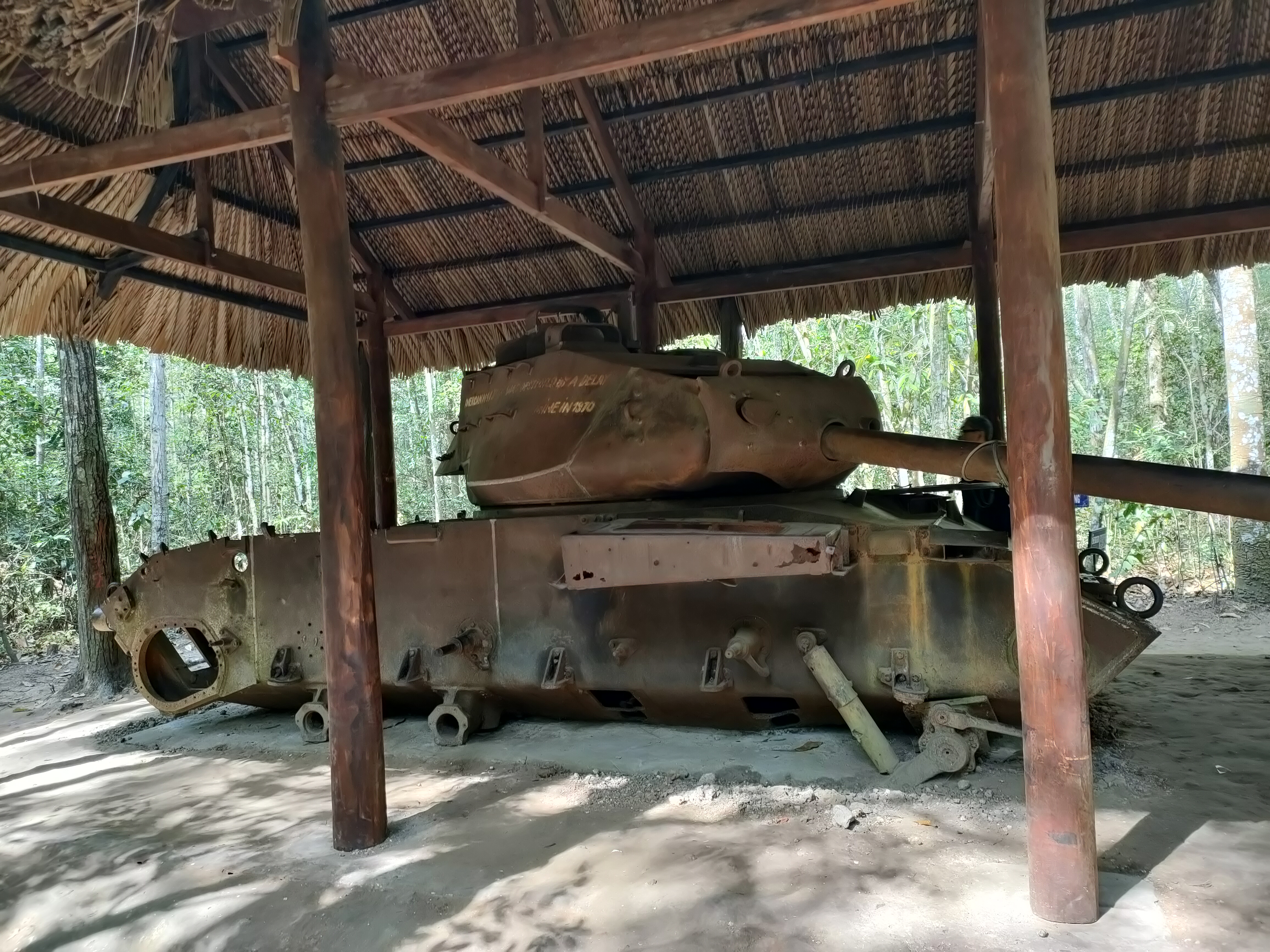 様々な工夫と団結力で造られたクチトンネルは、すごいと感嘆するばかりです。当時の倍に広げられたトンネルでも通るのは、かなりキツかったです。キャッサバは意外と美味しくいただけました。ガイドのニャンさんや運転手さんも人当たりがよく、優しかったです。帰りに戦争証跡博物館に降ろしてもらい、ベトナム戦争の悲惨さも実感しました。ホーチミンに来た時は、セットで行くことをお勧めします。