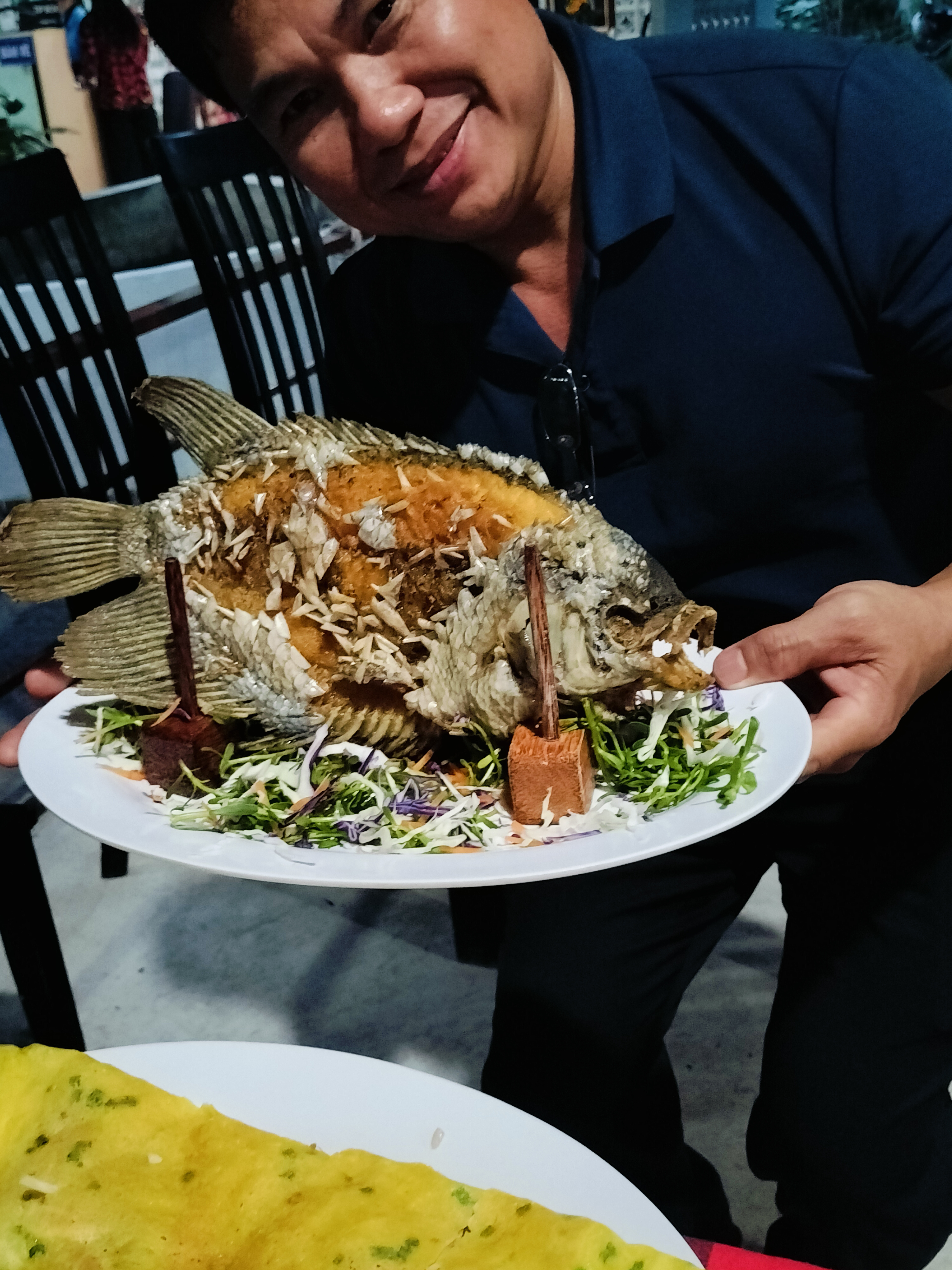 ブンさんというベトナム人の方がツアーをしてくれました。ベトナム戦争のことをより身近に知ることができ、とても勉強になりました!!メコン川を船で渡った後に食べた夜ごはんはどれも美味しく、特にエレファントフィッシュという魚は絶品でしたです!