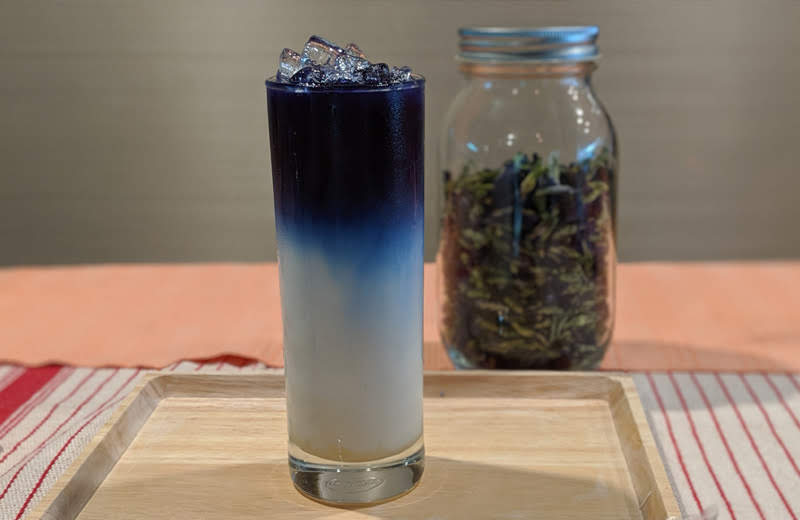 バタフライピーとは「チョウマメ」と呼ばれるマメ科の植物です。鮮やかな青い色の蝶のような形の花が特徴的で、タイでは花を乾燥させたものをお茶のようにして飲んでいます。