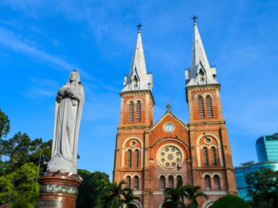 フランス統治時代に建てられた、ホーチミンを代表するカトリック教会です。外観は美しい赤レンガ造りで、資材の多くはフランスから運ばれたものが使用されています。