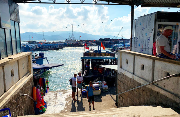 ニャチャン市内のホテルへと順番にお迎えにあがります。(時間はホテルにより異なります) ニャチャン港に到着 ボートに乗り換えます。 |