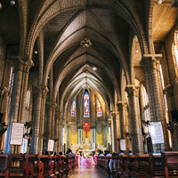 1930年代のフランス統治時代に建築されたゴシック様式の教会です。ニャチャン市街を見下ろす丘の上に作らた教会は今でもニャチャン市民に愛されているシンボルです。石造りの大聖堂の中には美しいステンドグラスを見ることができます。夜はライトアップされいて昼間とは全く違う雰囲気をまとっています。