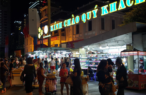 シクロでニャチャン市内のホテルへと順番にお迎えにあがります。(時間はホテルにより異なります) シクロで夜のニャチャン市内を巡ります。昼間とはまた違った雰囲気をお楽しみください。 気になる写真スポットで思い出の一枚を!ガイドにお気軽にお申し付けください。 シクロにてニャチャン市内のレストランに立ち寄ります。バインセオやネム・ヌオンといったベトナム南部の料理をお楽しみください。 |