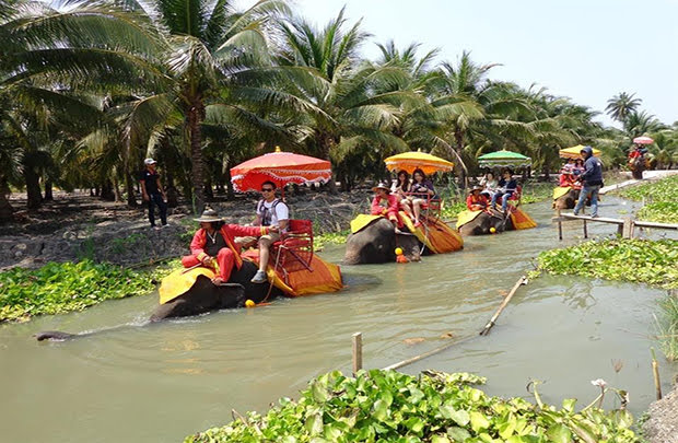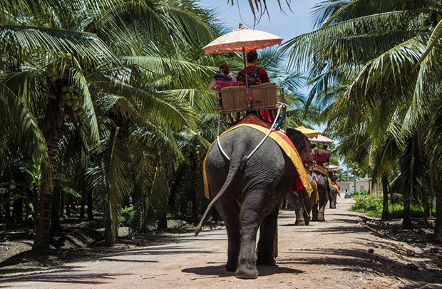 | 9:20 | 象園にて本格的象乗り体験スタート!約25分間、象の背中に乗って園内散策です。ヤシ畑の道や水路へも入ります。 |