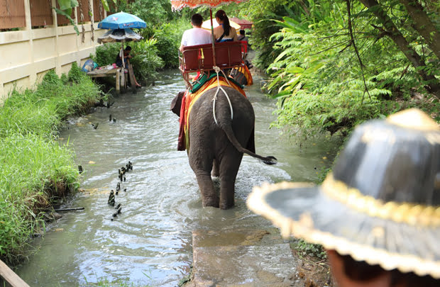 【大人気の体験型ツアー!】バンコク発本格象乗りと水上マーケット見学ツアー