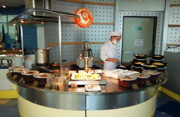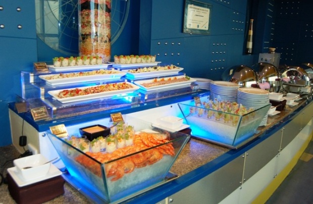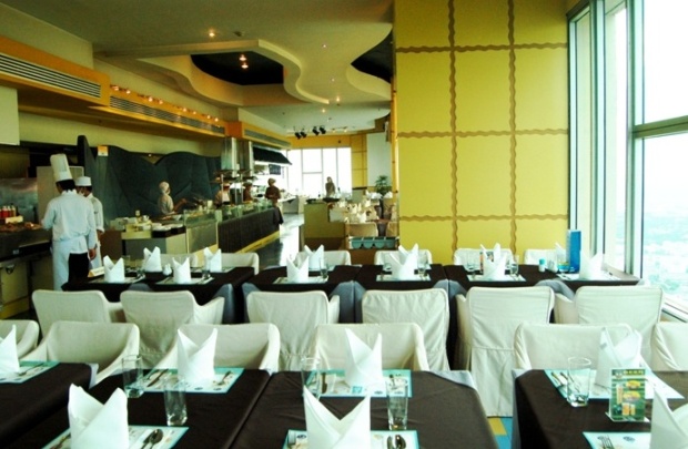 西洋料理、タイ料理に日本料理、デザートのスイーツやフルーツも充実したビュッフェは食べ放題、お腹一杯になるまでお召し上がり下さい。レストランは円形をしており、360度のパノラマを見ることが出来ます。