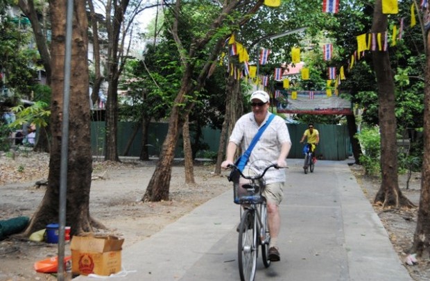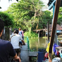 ゴーバンケッセルは、英語ガイドの案内で車が入れないようなバンコクの下町を自転車で見て回る参加体験型ツアーです。日本人参加者の対応にも慣れており、OK・Thank you・No 程度で充分楽しめるツアーとなっています。