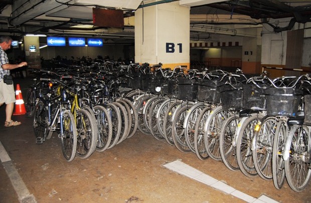 ツアーのスタートは自転車選びから。まずは何十台もある自転車の中から自分に合った自転車を選び、サドルの高さを調節しブレーキの具合を確認してからツアーが始まります。