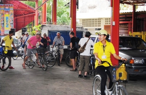 ゴーバンケッセルは、英語ガイドの案内で車が入れないようなバンコクの下町を自転車で見て回る参加体験型ツアーです。日本人参加者の対応にも慣れており、OK・Thank you・No 程度で充分楽しめるツアーとなっています。