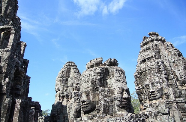 2番目の遺跡はアンコールトムです。細かく説明すると、アンコールトム内にもいくつかの遺跡があるのですが、メインの見どころであるバイヨンをじっくり時間をかけて見学します。
